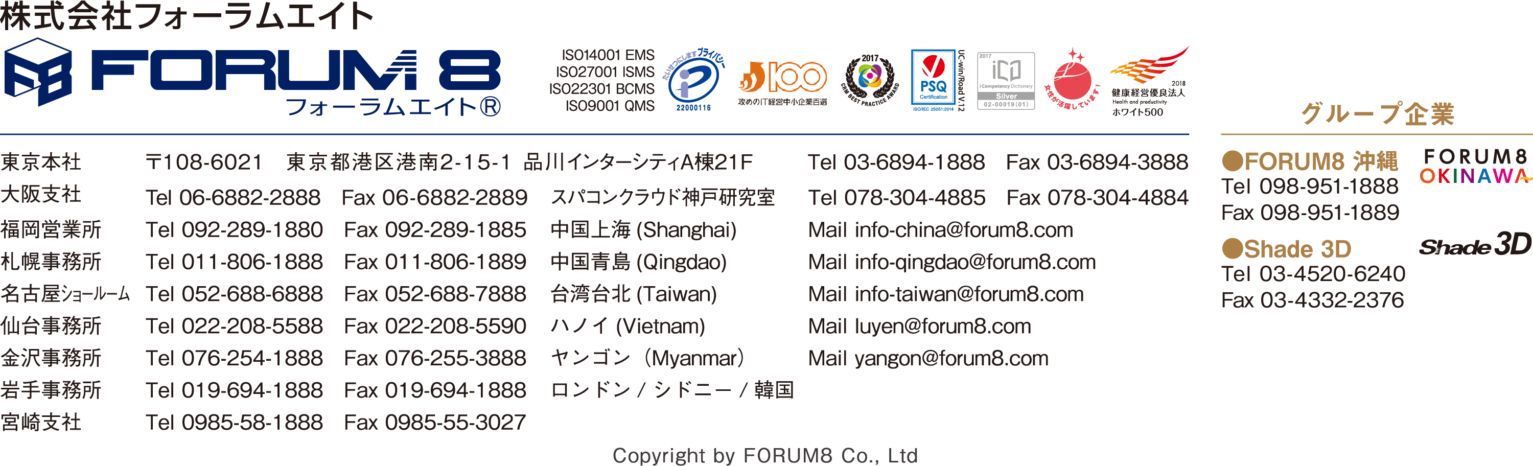 今後もフォーラムエイトは、VR 、3DCAD、FEMを軸に、IT によるユーザの生産性向上、業務の効率化を支援してまいります。