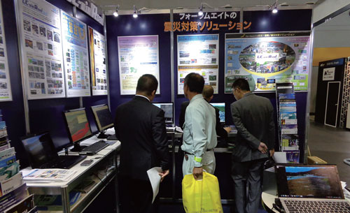 2日とも防災防犯に意識の高い方々の来場が多く、自分の住んでいる地域は津波が来るか来ないか?今地震が起こったらどこに避難すればよいか?など弊社のソフトを通じて防災に対する意識を高めていらっしゃいました。中には、UC-win/Roadの津波プラグインを使って地元の防災計画に役立てようというお話もあり、我々が具体的にお手伝いできそうな案件も多数ありました。