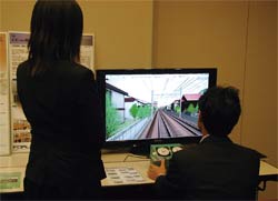 ドライブシミュレータや鉄道シミュレータ、新しいインターフェイスの提案であるKinect(TM)やMindSetなどを展示いたしました。ドライブシミュレータなどお伺いしてデモをお見せできない製品を体験していただくことができました。また複数の製品を一度にじっくりご覧いただける機会になったと思います。
