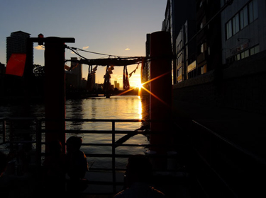 もうひとつの旅クラブは、「ご来光カフェ」を中之島の対岸、大阪水上バス淀屋橋港の桟橋で企画・運営している(協力:大阪水上バス株式会社)。これは、市民共有の資産である「中之島の水辺」を舞台に「都心の自然」という魅力の発掘を行い、水辺という公共的空間の過ごし方や使い方を多様な側面から提案し、各人それぞれの「中之島時間」を発見していただくことで、ひとりでも多くの方に中之島の豊かな普段使いをしていただくことを目的としている【図9-11】。