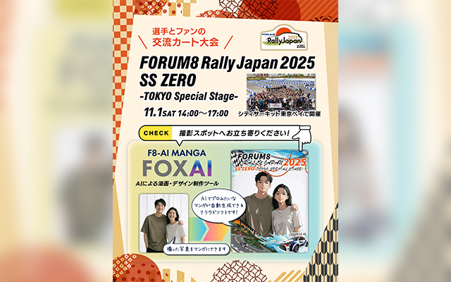 11月1日(土)シティサーキット東京ベイでスペシャルなプレイベントが開催✨注目はFORUM8 AI MANGA「FOX AI」体験。AIが創り出す”マンガの世界”をお楽しみいただけます。