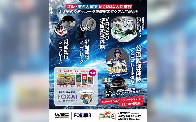 もうすぐ、ラリーが帰ってくる!11月6日【FORUM8 Rally Japan2025】が開幕。弊社のブースでは、大阪・関西万博ロボットエクスペリエンスで話題を集めた🌔月面走行、🏗️宇宙建設、国際宇宙ステーション「きぼう」船内遊泳シミュレーションが再登場 ‼️