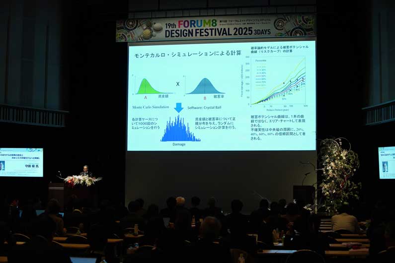 気候変動に伴う極端気象の増加や頻発する地震などの複合災害に対し、減災に向けた取り組みについてご講演いただきました。その他、国土交通省の推進するBIM/CIMおよびi-Constructionを視野に入れて、DXや耐震・防災・情報化施工等におけるフォーラムエイトソリューションの展開を発表しました。