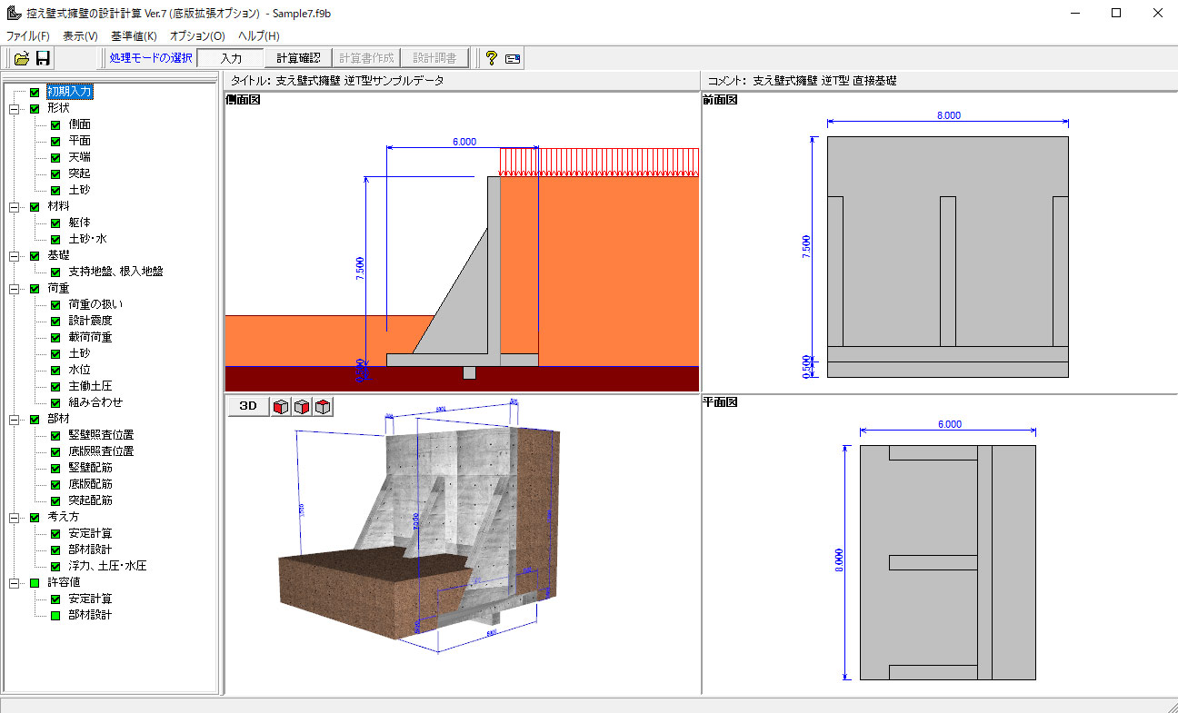 | 控え壁式擁壁の設計計算 Ver.7 |