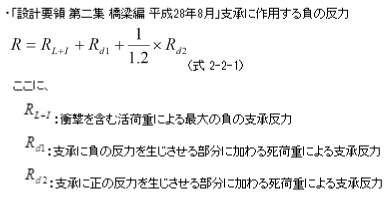 『設計要領 第二集 橋梁編 平成28年8月』に基づく支承に作用する負の反力の算出に対応。 |