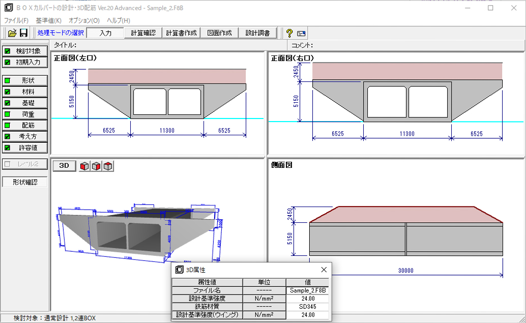 | BOXカルバートの設計・3D配筋 Ver.20 Standard |