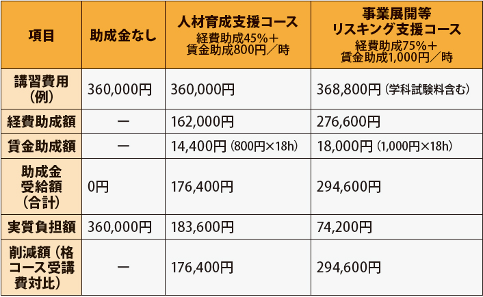 - 上記は例示(企業規模・訓練時間・対象経費・審査結果等により変動します)。