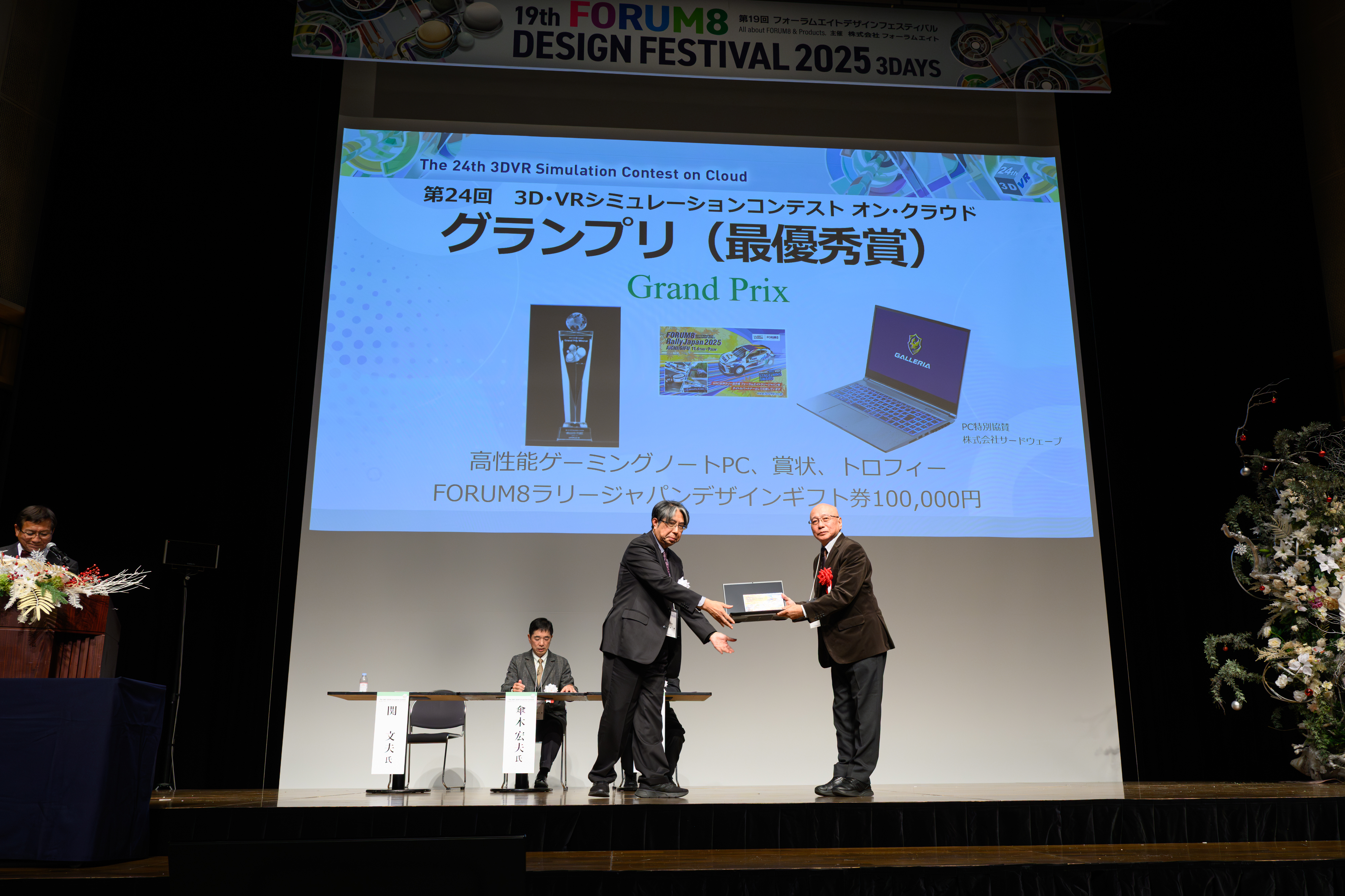 国内外からUC-win/Roadによる高度なVRデータ作品が集められる3D・VRシミュレーションコンテストは、2002年のUC-win/Road「ソフトウェア・プロダクト・オブ・ザ・イヤー」受賞を機にスタートして、FORUM8デザインフェスティバルのメインイベントとして毎年開催され、本年で25回目を迎えます。2011年からはVR-Cloud®によるクラウド一般投票が選考プロセスに追加され、2024年にはメタバニアF8VPSによるメタバースでの投票を行い、コンテストを盛り上げてきました。