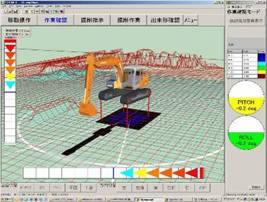 Recently, Forum 8 has been co-developing a remote-control system that enables the reception of information via wireless LAN from construction machinery equipped with a GPS and terrain laser scanning system. Movement is defined in 3D models and users can monitor progress in real time.