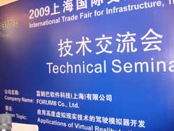 Shanghai is the largest city in commercial, financial and industrial fields in China. Growing of recent years by leaps and bounds is attracting many attentions from overseas. FORUM8 exhibited "2009 Intertraffic China" held in Shanghai from Wednesday 18 to Friday 20 March, 2009. It focused on the topic of traffic facilities, traffic safety and traffic management. In 2008 it was held in Beijing and in this year it was held in Shanghai. FORUM8, which exhibited "UC-win/Road" and "UC-win/Road Drive Simulator" received high reputations, introducing VR application cases in civil engineering fields to attendees from over the world. Exhibition summary is as following.