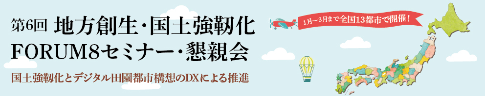 国土強靱化と地域振興への取り組みとの連携、とりわけ、各自治体におけるインフラ分野での取り組みへのデジタルを通じた貢献を目的として、2019年以来、全国中核都市で「地方創生・国土強靭化FORUM8セミナー・懇親会」を毎年実施しています。