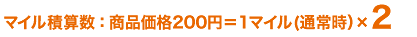 マイル積算数:商品価格200円=1マイル(通常時)×2