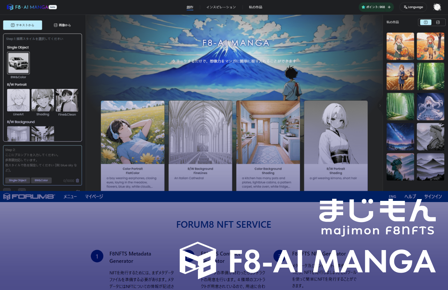 AIによる画像スタイル変換と学習モデルを活用した「F8-AI™ MANGA」は、プロフェショナル品質の漫画表現を自動生成し、創作の幅を大きく拡張します。また、ブロックチェーン基盤の「まじもんF8NFTS」は暗号技術でデータの改ざんを防ぎ、デジタル資産の安全な管理と所有を実現します。本講演では、AIとWeb3を融合させた、創造性と安心を両立する未来像を紹介します。