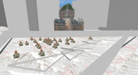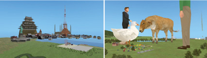 | なるほど!冬の「天空の城もどき」がこの夏、滑走路付きの天翔ける要塞に大進化!カッコい〜!既存モデルを工夫して、こんなに使えるって素晴らしい。周りを飛ぶ飛行機がとても効果的。内部空間も広がりを見せ、スキが無い。ビルの屋上には、道路で「令和」の文字が! |