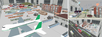 | あの鉄道博物館データがパワーアップして帰ってきた!新たに併設された交通博物館へは、列車以外にロンドンバス、遊具、飛行機、餅つきうさぎまでがずらりと並んでいます。また、館内上方へと掛けられた道路から、見下ろして展示を眺めることができるんです。渋滞緩和用に信号機を追加、ロンドンバスや列車が通行しているなど、ますます魅力が溢れています。 |