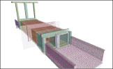 | ある建物の外装(二重窓)の性能比較を行うための熱負荷の解析事例。窓システム3種類について、1フロア分のゾーンの東西南北各面に窓を設置したモデルを作成した。気象データを使用し、年間8760時間分の窓部の熱取得、エアフロー部分の排気熱、表面温度について計算を行い、各パターンの比較に使用された。DesignBuilderV5のAir