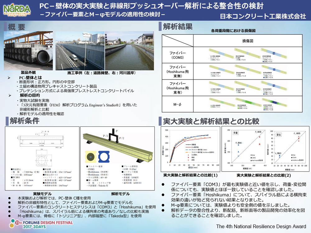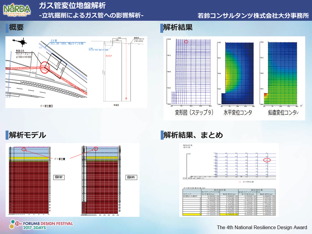 | 国土強靭化に資する具体的な事例と成果を一堂に集め、情報提供および技術研鑽の貴重な場となることを願って、「ナショナル・レジリエンス・デザインアワード」を開催いたします。構造解析(土木・建築)、地盤工学、水工学、防災の分野を対象とし、国土強靭化に資する優れた応募作品をご紹介いたします。 |