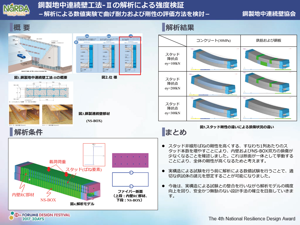 (ソイルセメント鋼製地中連続壁工法)について、スタッドの剛性が構造物全体に与える影響に着目して数値試験を実施した。