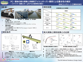 | PC-壁体は、道路擁壁、河川護岸などの自立式壁体構造物として使用される。現在は、PC-壁体の検討業務においては非線形解析による設計が行われていないが、今後は、必要となることが考えられる。本実験では、PC-壁体の解析モデルの整合性を確認するため、実物大試験での鉛直載荷曲げ試験を行い、その試験結果を「3次元有限要素(FEM)解析プログラムEngineer's