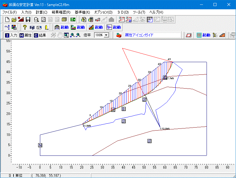| 使用プログラム : 2次元弾塑性地盤解析(GeoFEAS) 2D |