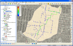 | 内径7.5m深さ41.0mの大きさの立坑をライナープレートを用いた掘削工事を計画した。立坑に近接してガス管があるため、掘削工事にともなう既設ガス管の沈下が懸念された。立坑が鉛直方向に円筒形なので、中心軸まわりの軸対称解析を行った。次に、その結果からガス管位置の沈下量を求め、許容値内であることを確認した。軸対称モデルによって立体効果を再現することができた。 |