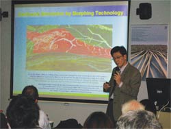 「国際VRシンポジウム」実現の契機となったのは、2007年8月に米サンディエゴ(カリフォルニア州)で開かれたSIGGRAPH 2007への参加です。 そこで当社展示の目玉の一つとしてアリゾナ州立大学建築・ランドスケープ学科の小林佳弘アシスタントプロフェッサーにご講演いただいた際、