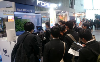 フォーラムエイトは「地理空間情報フォーラム」の企画展示ゾーンに出展し、Oculus体験、脳波シミュレータ、ドライブシミュレータ、都市模型プロジェクションマッピング、さらには4Kサイネージを利用しての「街づくりの巨人」などのシステムを展示しました。