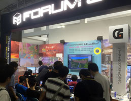 フォーラムエイトではVRコーナーにて出展し、「ゲームとの融合ローズオンライン×UC-win/Road」といった、オンラインゲームで作成されたモデルデータをUC-win/Roadで読み込んでmゲーム空間の構築が可能なこと、さらにはさまざまなハード機器と連動してシミュレーションができることを中心に紹介しました。
