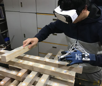 第1回、第2回勉強会では、SFCの池田研究室の事例(写真)として、ARによる作業員支援システムや、竹中工務店からはモデルデータや現場でのレーザースキャンから、軽量鉄骨壁(LGS)の鉄骨や、ボードまでプレカットし現場組立する事例などが紹介されました。 |