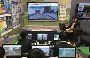 体験プレゼンコーナーでは、鉄道線形の入力の簡単さや近年導入が進む駅のホームドアの検討シミュレーションなどを体験いただき、運転訓練や景観検討でのシミュレータ構築検討商談にも結び付きました。