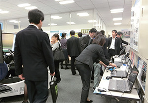 今回のセミナーでは、2017年3月公開のCIMガイドライン改訂や道示改訂を控えて、約40名と多数のユーザ様にご来場いただきました。弊社が提案を行っている、データ連携によるCIMモデルの活用など、可能な限り実際のソフトウェアによるデモをお見せしながら、機能や対応内容についてご確認いただきました。また、UC-1製品について、2次元の静的解析から3次元の動的解析、補強設計まで一連でデータ連携が可能な点などもご覧いただきました。セミナー後の展示では、新刊書籍「VRで学ぶ橋梁工学」のをご購入いただいたり、3DCADソフトによる3D図面作図のデモなどを体験いただき、CIM対応に向け情報収集の場として活用していただきました。