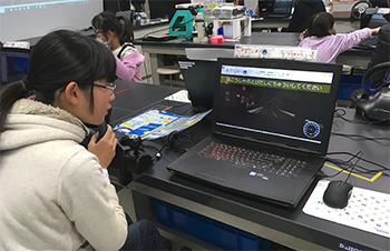 弊社は、UC-win/Roadを使ってVRソフトに慣れ親しみ興味を持ってもらう目的で、「バーチャル空間に町や道を作って運転しよう!」をテーマとしたセミナーを実施し、33名のこども達が参加。VR空間内の駅前広場に様々な3Dモデルを配置して町をデザインし、道路生成とシナリオ体験によるマニュアルドライブ走行、ジェットコースター作成などを体験してもらいました。また、境港市「水木しげるロード」リニューアルでのVR活用事例も紹介。「ゲゲゲの鬼太郎」はこどもも大人も馴染みのあるキャラクターであることから、VRの活用をより身近に感じていただきました。こどもたちからは「楽しかった」「1時間半では足りない」などの嬉しい言葉がありました。
