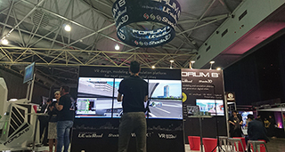 360°シミュレータは大人気で、ブースのロケーションも会場のエントランスを入った手前と最高の位置にあることから多くの来場者から注目を集め、体験者からは大興奮の叫びが時折聞こえてきました。