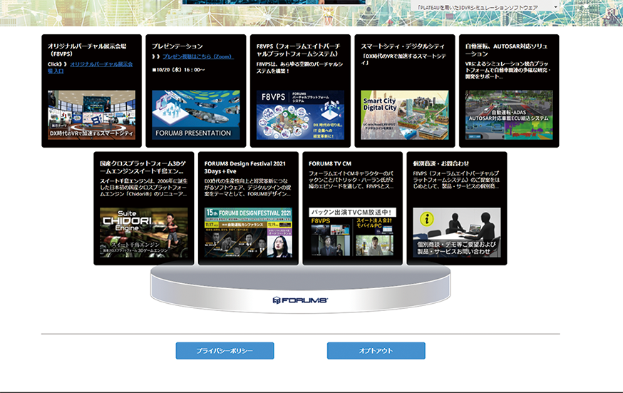 | ■ハイウェイテクノフェア2021 DX時代の国土強靱化ソリューション ~デジタルツインを可視化する3DVRソフトとF8VPS~ ●日時:2021年10月6日~7日 ●会場:東京ビッグサイト ●主催:公益財団法人 高速道路調査会 |