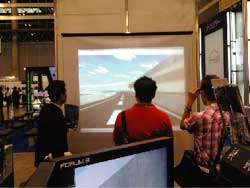 弊社ブースでは、3次元VRソフトウェア「UC-win/Road」をベースとした本格的四輪実車型ドライブシミュレータ・パッケージシステム「UC-win/Roadドライブ・シミュレータ」を中心に展示を行いました。UC-win/Roadの持つ、効率的な3次元VR空間作成機能はそのままに、作成したVR空間において様々な実験に適用が可能なシステムであり、最近では、主にITS関連分野において活用されています。会場では、数多くの来場者の皆様に、実際にドライブシミュレーションを体験いただき、今後の各社様のシステム開発におけるシミュレータとして
