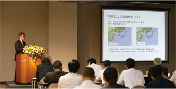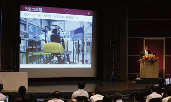 鵜飼恵三教授による特別講演よりスタート。続いて、防災科学技術研究所の佐々木智大氏による、E−ディフェンスでの多様な実験を通じた減災技術開発展望についての講演が行われました。