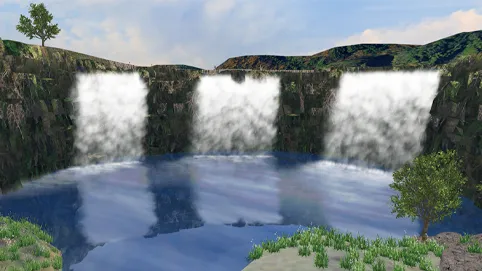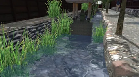 釜石市周辺をイメージしたデータです。Xpswmmによる津波の解析結果をVR上で可視化します。