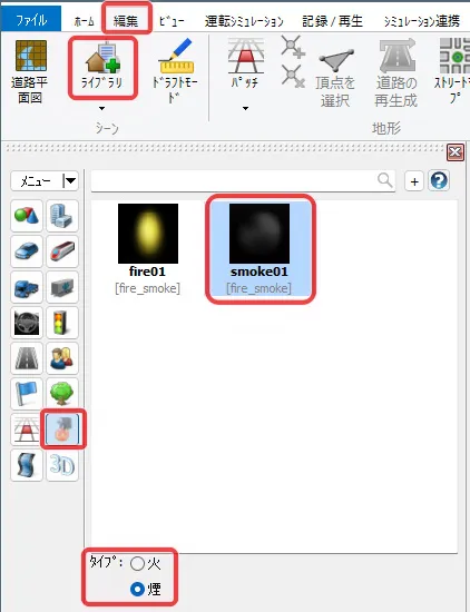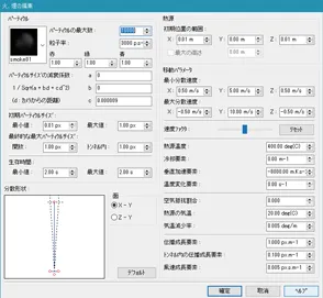 メニュー「環境の表示」をオンにすると、煙が表示されます。