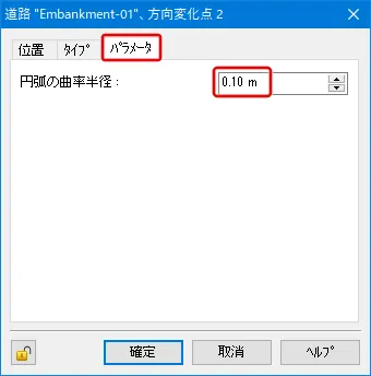 道路の終点方向に向かって左端から右側へ順に定義します。Xが道路幅でYが高さになります。原点(X1=0.0, Y1=0.0)が道路線形の位置に配置されます。