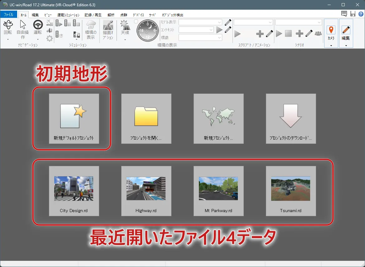 まず、UC-win/Roadを開いた最初の画面を紹介します。