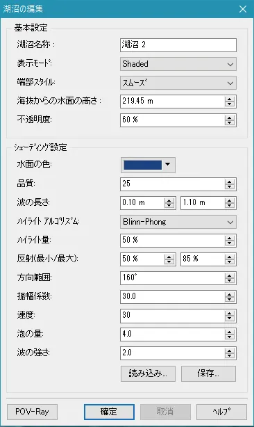 「直近のデータを無視」で合成して想定外の標高を持った地形が生成されるような場合は、「正方形データを無視」で合成するか、あるいは手動で標高点を編集します。