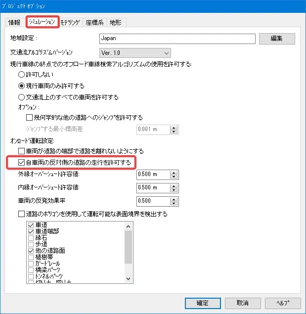 シミュレーションの場所が未定で、何も無い地形だけの状態を確認したい場合は、「新規デフォルトプロジェクト」をクリックすると日本のある地点の地形が自動的に読み込まれます。基本操作や動作の確認、線形入力などが可能です。