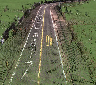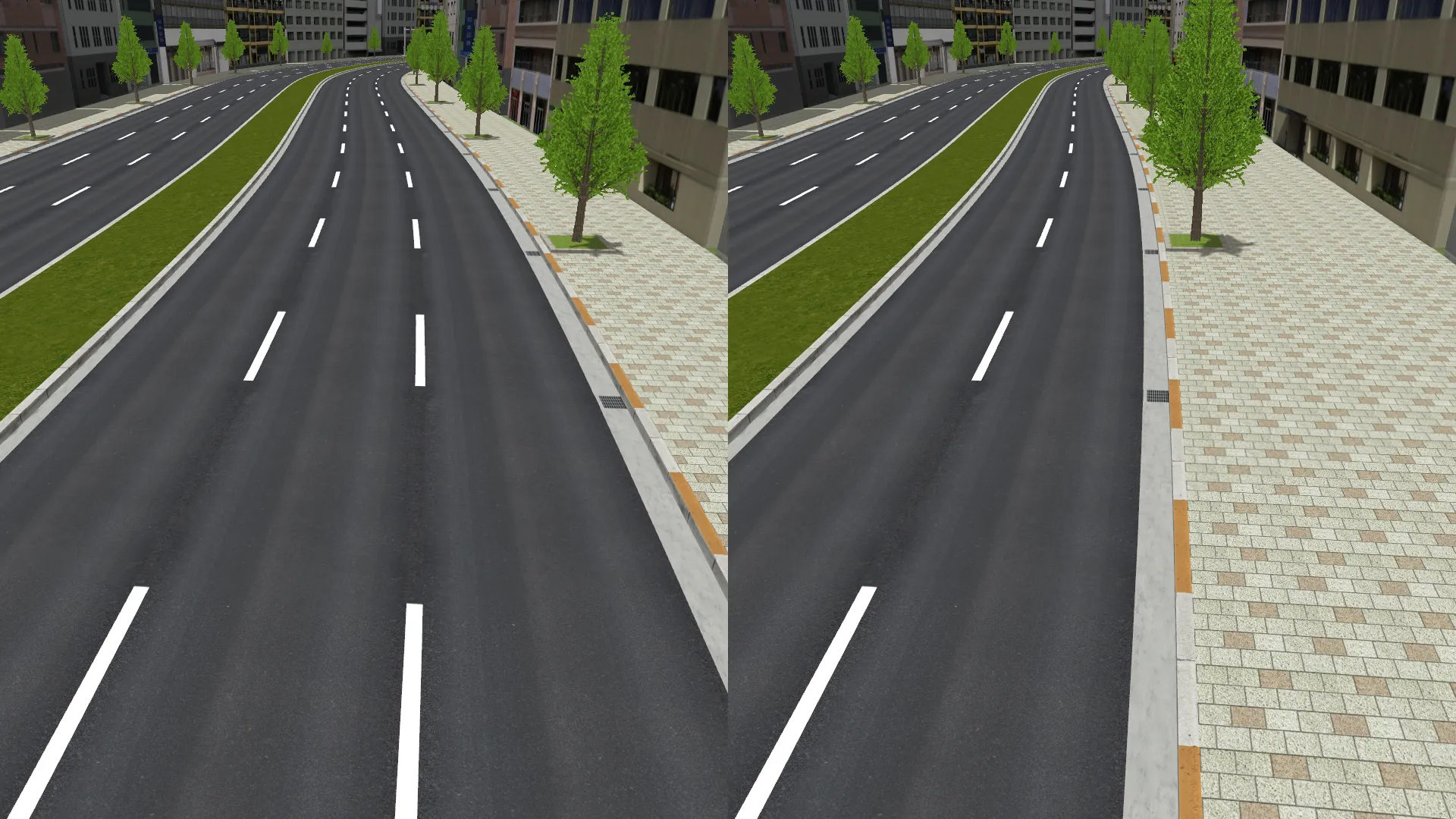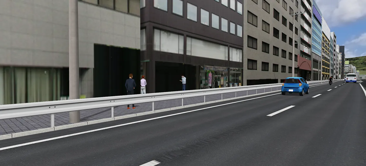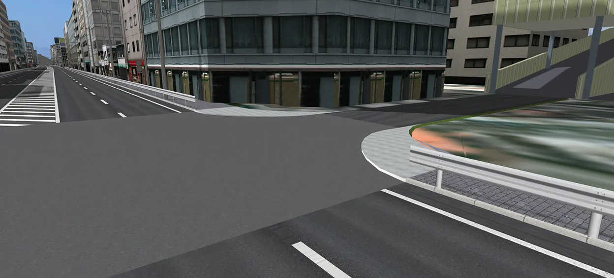 首都高速道路の一部区間をイメージしたデータです。ドライビングシミュレーションのために高パフォーマンスな表示を可能としています。