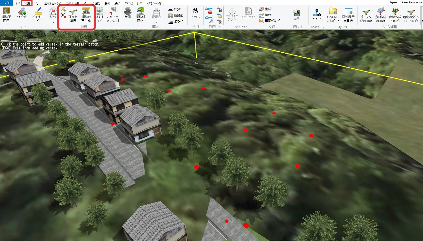UC-win/Roadによる地形生成方法の一つとして、国土地理院の50mメッシュ標高データから自動的に生成することができます。