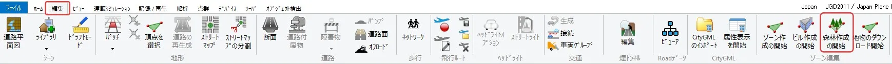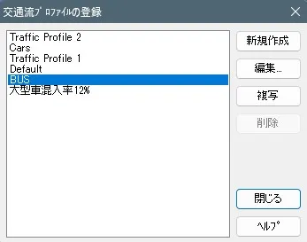 メニュー「編集」> 交通カテゴリの「車両グループ」で走行車グループを新規追加します。