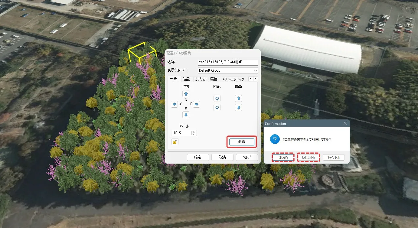 オブジェクトはモデルや樹木を指定できます。