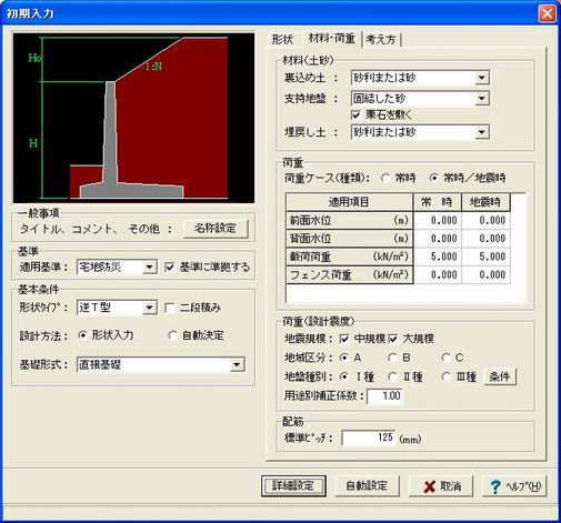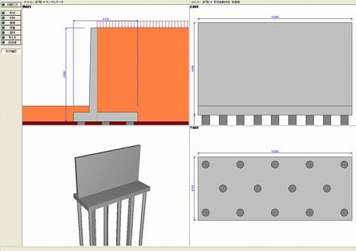| 片持梁式、U型、重力式、もたれ式、任意形状擁壁の設計計算、図面作成プログラム、擁壁の設計