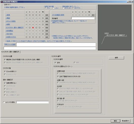 損傷のある部材を選択し、一般的状況から判断される損傷程度の評価区分を指定するこ