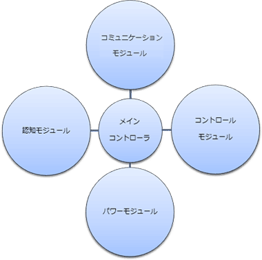オフィスサービスロボットのための公開された基本モジュールは存在しておらず、オフィスサービスロボットを制御する以下の4つのモジュールと、それらをコントロールするメインコントローラーを開発します。
