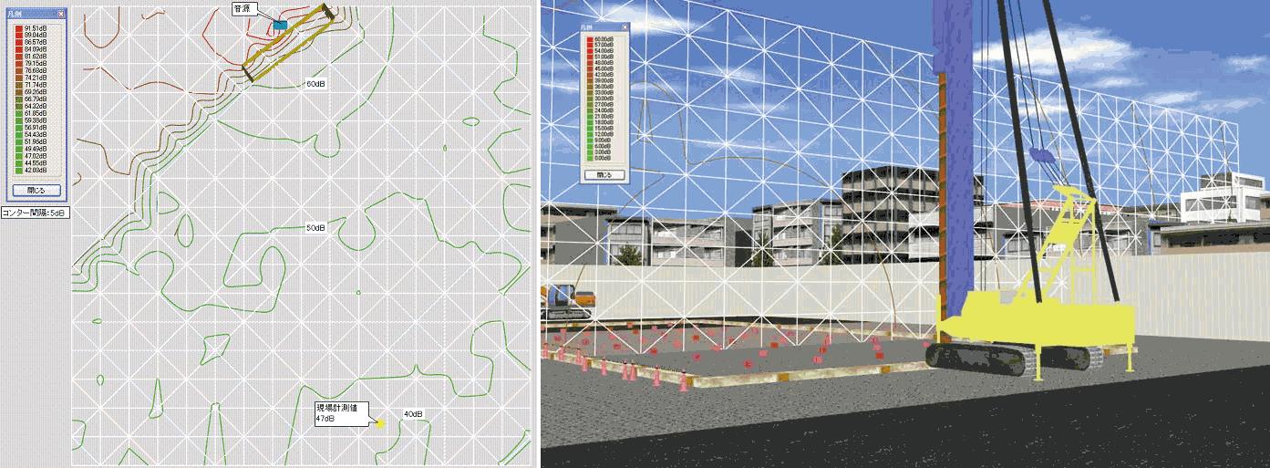 測定現場のVRモデリングおよび騒音解析シミュレーション結果の可視化と併せて実際の測定結果をご利用いただくことで、解析結果の確認や比較検討に役立ちます。